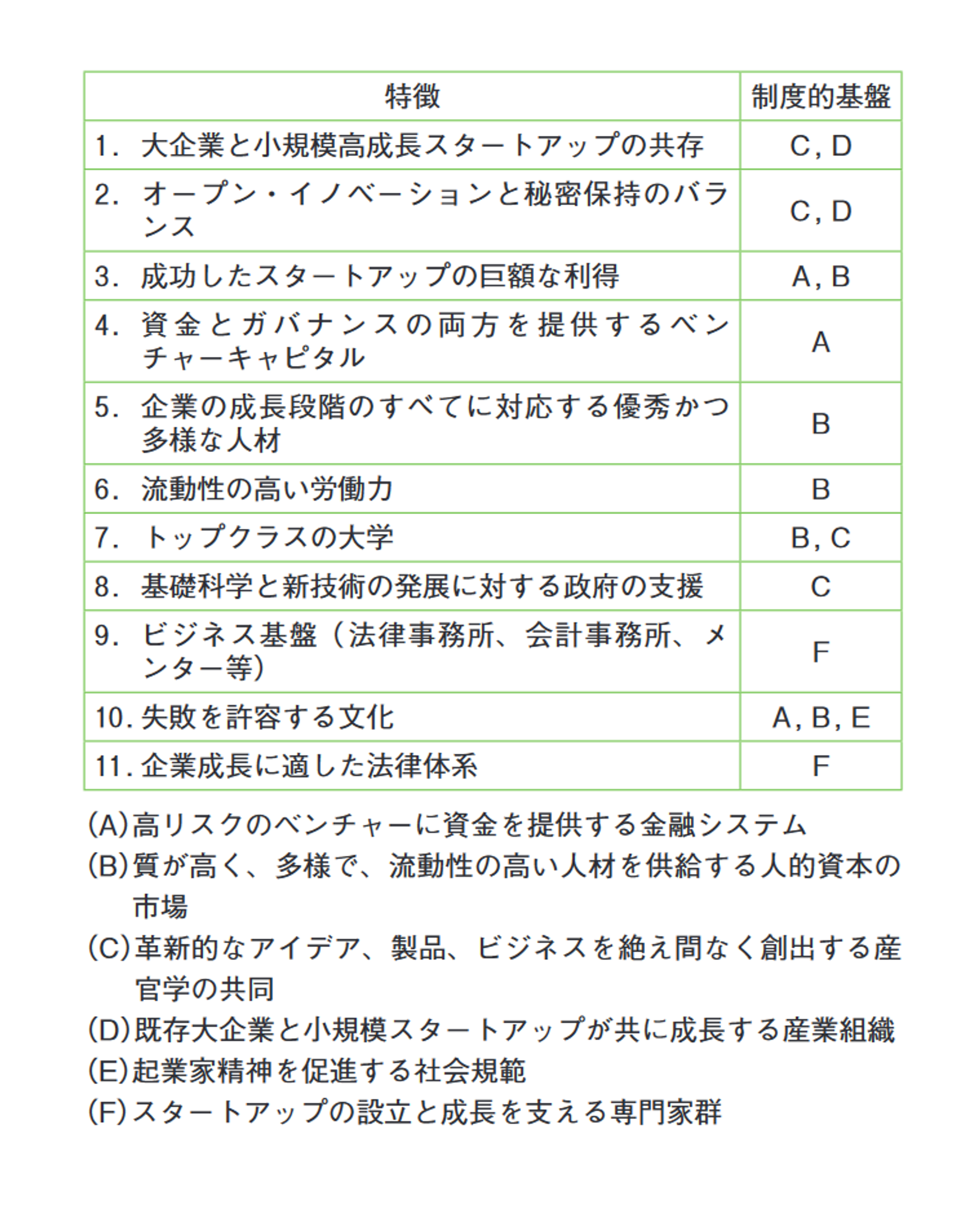 NIRAオピニオンNo.19 2016.01.15 日本型イノベーション政策の検証 この記事は分で読めます シェア Tweet 星岳雄 スタンフォード大学教授 岡崎哲二 東京大学大学院教授 概要 1980年代以来、日本ではイノベーションに基づく持続的な経済成長を実現するため、多くの産業政策が実施されてきたが、それらの政策が成功を収めたとは言い難い。現在進行中のアベノミクスにおいても、イノベーション政策が大きな課題である。 今後、日本は、イノベーション主導の経済成長が比較的うまくいっているシリコンバレーのエコシステムを十分に理解し、同等の機能を持つ制度的基盤を整備することが理想的である。これまでにもさまざまな政策が行われてきたが、実施してきた政策の有効性が厳密に検証されることは少なく、検証結果に従って政策を調整する取組みも足りなかった。 また、制度的基盤の中には、政策によって速やかに整えることが難しいものも多い。その場合は、日本企業がシリコンバレーを活用するという視点も重要であり、その第1歩として、日本の企業や起業家がシリコンバレーへの進出で得た知識や情報を共有するデータベースの構築を行うべきだ*。 PDFで読む (1.8MB) INDEX 1. 日本にシリコンバレーが生まれていない6つの理由シリコンバレーの制度的基盤 比較制度分析から見たシリコンバレー 「失敗の許容」を支える金融システム 失敗は有意義な経験と見なす社会規範 日本との違いは何か 制度的基盤を整えるのと同時にシリコンバレー活用の視点も 2. 政府のイノベーション政策はなぜ失敗続きだったか成果を検証する厳密な政策評価が必要 効果が見えないイノベーション政策 テクノポリス法から産業クラスター計画へ 名前を変えて存続した「ナショナル・プロジェクト」 「シリコンバレー複製」の試み 厳密な政策評価が必要だ 3.日本企業にありがちな、シリコンバレーへの誤解日本がシリコンバレーをうまく活用するには シリコンバレーのエコシステムを活用する 持ち帰った知見が宝の持ち腐れに 給与格差をどうするか 動きが遅いことで知られる日本企業 4. シリコンバレーを活用せよ 「オープン・イノベーション」とは 情報をオープンに 教育機関をオープンに 人脈をオープンに イノベーションはオープンな社会から生まれる 1. 日本にシリコンバレーが生まれていない6つの理由シリコンバレーの制度的基盤 米国のイノベーション発信地、シリコンバレーが再び注目を浴びている。日本経済がまだ確実とは言えないまでも、20年近くにおよぶ停滞から抜け出そうとしているいま、持続的な成長のために必要なのは、絶え間のないイノベーションだということがようやく理解されてきたためだろう。 先般再改訂された「成長戦略」も、アベノミクスは、「デフレ脱却を目指して専ら需要不足の解消に重きを置いてきたステージから、人口減少化における供給制約の軛を乗り越えるための腰を据えた対策を講ずる新たな「第二ステージ」に入った」とし、「未来投資による生産性革命」とそれを地方にも広めていく「ローカルアベノミクス」を推し進めるとしている。「生産性革命」が実際に起こっている場所として、シリコンバレーに注目が集まるのは当然である。 日本の追い付き型経済成長が終わりに近づき、イノベーションの重要性が認識され始めた1980年代以来、シリコンバレーは繰り返し話題に上り、日本版シリコンバレーの開発といったことも論じられてきた。だが、シリコンバレーのようなイノベーション型の経済システムが日本の一部に定着することはなかった。 1つの理由は、シリコンバレーで観察される種々の特徴がそもそもどのような制度的基盤に拠っているものなのかということが十分に理解されないまま、そうした制度的基盤を日本で構築することが可能なのかどうか、可能だとすればどのような政策が有効なのか、といった議論が真剣に行われてこなかったためであろう。 比較制度分析から見たシリコンバレー ここでは、シリコンバレーの制度的基盤とは何なのかということを明らかにして、それらを日本で実現することが可能なのかを考える。 われわれが制度的基盤と言うときの制度とは、故青木昌彦氏が定義したように、「ゲームが繰り返しプレーされる仕方の際立った特徴に関して、共有された予想の自己維持的システム」(Aoki 2001, p.10)である。このように、制度にはゲームのルールだけではなく、プレーヤーの均衡戦略に従った行動およびそうした行動への期待も含まれる。Aoki (2007, p.2)が指摘したように、「このように定式化された制度は本来内生的であるが、個々の行動主体にとっては外生的制約として捉えられる」のである。 シリコンバレーの特徴については夥しい量の研究がある。多くの研究で指摘されてきたものを抽出すると、表1の第1列に示した11の特徴としてまとめることができる。これらの特徴を支えるものとして次の6つの制度的要因を考えることができる。すなわち、(A