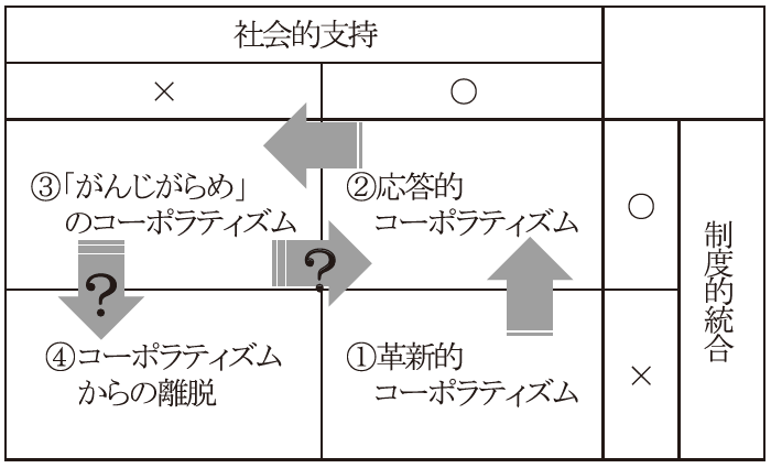 NIRAオピニオンNo.24 2016.07.10 課題「解決」型デモクラシーのガバナンス政労使協議という実験 この記事は分で読めます シェア Tweet 水島治郎 千葉大学教授 谷口将紀 NIRA総合研究開発機構理事/東京大学教授 牛尾治朗 NIRA総合研究開発機構会長 概要 グローバル化と脱工業化という未曽有の経済社会構造の変革期にあって、先進各国は少子高齢化・財政赤字・福祉国家改革といった新たな課題に直面しつつも、ある時は大胆に、ある時は慎重に、課題を解決するための方法を提示し、実現を試みてきた。そのさい、近年のヨーロッパ諸国でしばしば採られている手法が、政労使3者協議をはじめとするコーポラティズム的解決方法である。社会の多様な利益・集団の知恵を活かし、対決ではなく合意によって隘路を突破しようという方法は、むしろ政策イノベーションの発火点として機能する可能性を秘めている。 安倍政権のもとでは、政労使会議の場が設けられ、賃上げを通じて経済の好循環を支えることが目指されている。この政労使会議が、ヨーロッパにおいて発達したコーポラティズムを1つのモデルとして導入されたことは容易に想像できるが、現実には政府による要請が先行しており、労使の声を適切に吸い上げ、いわば「市民社会の知恵」を活かす回路として機能しているとはいえない。労使をはじめ社会各層に開かれたコーポラティズムの手法を活かすことで、現代的課題に対応できる新たなガバナンスが可能となるのではないだろうか。 PDFで読む (1.0MB) INDEX 「実験場」としてのデモクラシー 「一億総活躍」と参加型社会 政労使協議とコーポラティズム コーポラティズムをめぐる2つのイメージ 日本への示唆 「実験場」としてのデモクラシー グローバル化と脱工業化という未曽有の経済社会構造の変革期にあって、欧州や北米の先進各国は経済的・財政的にさまざまな困難に直面しつつも、ある時は大胆に、ある時は慎重に、課題を解決するための方法を提示し、実現を試みてきた。日本にとって焦眉の問題である少子高齢化・財政赤字・構造改革の遅滞といった課題も、他の先進各国が多かれ少なかれ、直面してきた問題であった。その意味では、各国の行く手に共通の大きな「課題」が立ちふさがっているのであり、「課題」があること自体を問題視しても前に進むことはできない。 むしろ重要なことは、それぞれの国や地域がこれらの「課題」に対し、いかなる「解決」を編み出し、どのようなイノベーションを実現したのかということだろう。本稿では、このような課題「解決」型デモクラシーをめぐる政治過程、とりわけガバナンスのあり方について検討したい。 フランスの著名な政治学者であるピエール・ロザンバロンは、デモクラシーを「実験場 testing ground」として捉えている(注1)。彼によれば、デモクラシーを考えるさいには、そのデモクラシーが解決すべき「課題」を出発点に置くことが重要である。あるべきデモクラシー、理想的なデモクラシーを措定し、そこから現実のデモクラシーを断罪するのではない。そもそもデモクラシーは複雑な現実、矛盾をはらんだ存在なのであり、「課題」を抱えることは自然なことである。むしろデモクラシーが「課題」解決に取り組むなかで、そのデモクラシーの真価が発揮される。まさにわれわれの前に広がるデモクラシーという広大な実験場において、課題「解決」の実験を勇気を持って進めていくことが、必要とされているのである。 「一億総活躍」と参加型社会 さてそれでは、上記のように「課題」を克服し、目指すべき社会として、現在の日本ではどのような社会モデルが念頭に置かれているのであろうか。次の一文を見てみよう。 若者も高齢者も、女性も男性も、障害や難病のある方々も、1度失敗を経験した人も、みんなが包摂され活躍できる社会、それが一億総活躍社会である。 一億総活躍国民会議「一億総活躍社会の実現に向けて緊急に実施すべき対策」(2015年11月26日)における、「包摂と多様性がもたらす持続的な成長」という項目の冒頭の一文である。周知のように安倍内閣では、「一億総活躍」「女性活躍」を掲げ、これまで労働市場に参加してこなかった女性や高齢者、障害者など、より多くの人々の「参加」「活躍」を訴えている。戦後日本で主流だった、男性の稼ぎ手と専業主婦からなる「モデル家族」には明らかに距離を置き、むしろ女性労働力の「市場化」を進めている点で、安倍内閣は伝統的な保守政権とは志向が大きく異なっているともいえる。 このような安倍内閣の路線を見るとき、それがヨーロッパにおいて近年採用されてきた理念や政策と、少なくとも表面上は、多くの類似点を持っていることに気づく。たとえば「一億総活躍社会」は、1990年代以降、ヨーロッパ各国の福祉国家改革のさいに志向された「参加」型社会-すなわち、女性・高齢者・障害者・福祉給付受給者なども含め、可能な限り多くの市民が労働市場や