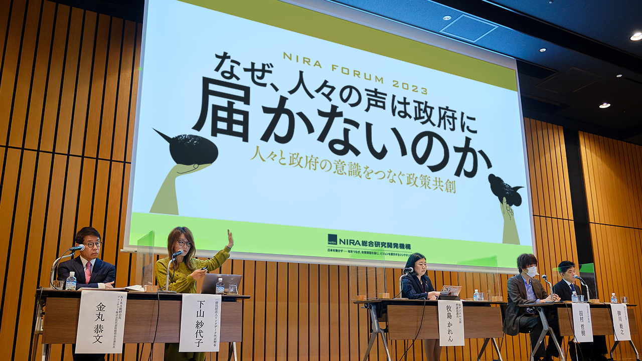 English version NIRAオピニオンNo.67 2023.06.12 なぜ、人々の声は政府に届かないのか人々と政府の意識をつなぐ政策共創 この記事は分で読めます シェア Tweet NIRA総合研究開発機構 概要 NIRA総研は、2023年2月4日にNIRAフォーラム2023「なぜ、人々の声は政府に届かないのか-人々と政府の意識をつなぐ政策共創-」を開催した。 人口減少が進行しており、社会全体のパイが増えない中、今の政治には痛みを分かち合う厳しい決定が求められる。政治は、苦い薬ではあっても、将来を含めた人々の幸せを最大化する真の利益を示す必要がある。それは、人々の利害や思いに対してレスポンシブ(反応的)である以上に、自らを含む将来の人々や社会に対してレスポンシブルな(責任ある)方策を共に見出していくことだ。 そのためには、政府には、時々の状況に対応して、柔軟に方向性を変えられるアジャイル型の政策形成の仕組みを根付かせ、変革を促すための結集力を高めていくことが求められる。また、行政データのオープン化を一層進め、多様なデータを使って、ロジカルな議論を積み上げていかなければならない。 さらに、人々と政治が非公式かつ自由な討議を通じて、社会に対して責任ある方策を共に見出すための政策共創の場が重要となる。すなわち、話し合い中心の「熟議民主主義」を根付かせ、自分の意見は反映されたという実感を持てるよう民主主義の議論のプロセスを見直す一方、政治も熟議の成果に基づき複数の課題解決の方策を巡って政党間で競争し、意思決定の透明性と説明責任を高める。この2つの方向の仕組みづくりを同時に行っていくことこそが、民主主義のサステイナビリティーを保つための道である*。 PDFで読む (1.2MB) PDF (English) (325.8KB) INDEX 将来の人々に対してレスポンシブルであるために アジャイル型政策形成で多様化した時代に応える 個が多様化する中で、結集力を高める 四則演算で考える民主主義 「届かない」と共に「届き過ぎる」時代の熟議民主主義のすすめ 合意形成のためにデータ活用を一層進めよ これからの政策共創に向けて 会場の様子 NIRAフォーラム2023登壇者・牧島かれん 前デジタル大臣/衆議院議員・宇野重規 東京大学教授・金丸恭文 フューチャー株式会社代表取締役会長兼社長/NIRA総研会長・下山紗代子 一般社団法人リンクデータ代表理事・田村哲樹 名古屋大学教授・谷口将紀 東京大学教授/NIRA総研理事長・柳川範之 東京大学教授日時:2023年2月4日場所:赤坂インターシティコンファレンス「the AIR」 冒頭の基調講演では、東京大学教授でNIRA総研理事長を務める谷口将紀氏より、以下の問題提起がされた。 将来の人々に対してレスポンシブルであるために 昨今の米中対立やロシアのウクライナ侵攻により、国際社会の分断が深刻になっている。これまで世界は、ヒト、モノ、カネ、情報のグローバリゼーションにより経済的な相互依存を深めてきたが、ここにきてグローバル化の行方に不透明感が増している。一方、日本では世界に先駆けて人口減少が進行し、社会保障制度や地域の持続可能性への不安が高まっている。 社会全体のパイが増えない状況で、今の政治は、痛みを分かち合う厳しい決定を行わなくてはならない。本日のテーマである「なぜ、人々の声は政治に届かないのか」といっても、人々の声というのは、自身の損得勘定からくる賛否ではなく、また、政府や政党に近い、声の大きい人々のことでもない。政府、政党、政治家には、感情レベルの人々の思いを汲み上げるだけではなく、たとえ苦い薬であっても、そう遠くない将来に人々の幸せを最大化するよう、人々の真の利益を示してもらう必要がある。それは、人々と政治の相互作用を通じて、人々の利害や思いに対してレスポンシブ(反応的)である以上に、自らを含む将来の人々や社会に対してレスポンシブルな(責任ある)方策を共に見いだしていくということだ。 そのために必要なのは、たとえ厳しい選択をするとしても、決して人々のことを悪いようにはしないという政治に対する信頼感ではないか。この信頼感があれば、積極的な賛成は得られなくとも、人々は政治がくだした意思決定を比較的受け入れやすいだろう。ところが、現実は、日本人の政治に対する信頼感は絶望的に低い。「世界価値観調査」によると、日本人の政府に対する信頼度は、調査対象48カ国中41位、政党に対する信頼は38位、国会に対する信頼は40位。文字どおりの「信無くば立たず」である。 では、合意のための突破口をどうやって見つけるのか。それは、単に政府、政党、政治家に任せるのではなく、また、単に従来型の人々の政治参加を拡大するというのでもない。人々と政府が共に創るという政策共創の場が必要であり、熟議を通じて合意を得るための糸口を見出さなければならない。 続いて、基調報告として、前デジタル大臣で衆議院議員の牧島かれん氏より、以下の問題提起がされた。 アジャイル型政策形成で多様化した時代に応