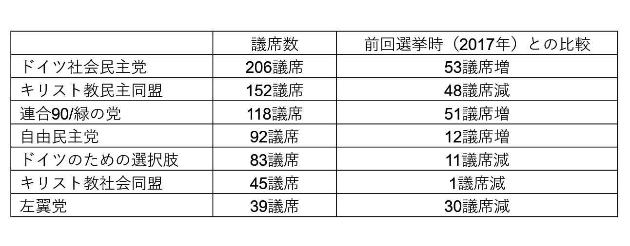 研究報告書 2022.01.14 2022年の各国政党政治 経済・社会文化・グローバリゼーションードイツ連立政権発足への一考察ー この記事は分で読めます シェア Tweet 新川匠郎 神戸大学大学院国際文化学研究科講師 概要 ドイツにおいては、2005年以来アンゲラ・メルケルが率いてきた長期政権から、新しい政権への交代が2021年に見られた。その新政権を担ったのはドイツ社会民主党、連合90/緑の党、自由民主党の3党である。3党はそれぞれドイツ連邦政府を担う与党経験があった一方、この3党による連立政権は今回が初めての試みでもあった。本レポートでは、新しい連立政権がどういった交渉の経緯で成立したのか、ドイツの制度的な特徴を背景にした「数の原理」および各党の「政策位置」から考察を加えたい。そこではまず、選挙を経て新政権発足に至った交渉過程で、今回の3党連立がどのように選びとられていったのかを概観する。次に新政権発足までの制度的な背景として、議会多数派の支持を受けることが重要な一方、ドイツの連邦制が連立政権の形成において見逃すことのできない役割をもつことについても確認する。その上で新政権発足に向けた3党間での大臣職配分の交渉が、議会第1党となったドイツ社会民主党にとっては必ずしも最適解でなかったことを指摘する。この交渉選択に対して本レポートでは、各党の欧州統合への立場を前提として、前政権の特徴、政策的な異質さ、選挙で顕在化した争点という3つが関わっていたのではないかと提起する。以上の連立交渉の考察を踏まえて最後に、現与党がテーマに掲げる「進歩」へいかに取り組みうるのか、また、それと連動した野党の立場・役割について、新政権成立の持つ含意として考えてみたい。 PDFで読む (429.9KB) INDEX 新政権発足までの過程 新政権発足の制度的な背景 新政権発足に向けた役職配分の問題 新政権発足に向けた政策合意の問題 新政権発足の含意 新政権発足までの過程 ドイツでは2021年9月26日に行われた連邦議会選挙を経て、12月8日、ドイツ社会民主党(以下、SPD)のオーラフ・ショルツを首相とする新政権が発足した。日本と同様に議院内閣制であるドイツでは、議会多数派を形成し、その支持なくして政権が成り立たない。しかし、今回の選挙でキリスト教民主同盟(以下、CDU)に代わり第1党となった中道左派のSPDは連邦議会で206議席の獲得にとどまり、議会の過半数(368議席)を超えるにはほど遠かった。そのため議会からの支持を取り付けられるよう、他の議会政党と政権発足に向けた交渉を事前に行う必要があった。国によっては国家元首を通じて定められた組閣担当者が交渉を進める場合もあるが、ドイツでは基本的に政党間で「フリースタイル」の交渉となる。そこではまず政党間で連立の可能性を探り合い、その後、連立政権の発足に向けて具体的な話(役職配分や政策方針)を詰めるという段階的な交渉が行われる。 今回の場合、SPDに加えて環境問題に力点を置く連合90/緑の党(以下、緑の党)、そして政治・経済的な自由を掲げる自由民主党(以下、FDP)の3党による議会多数派の確保が目指されて、そのための交渉が選挙後に進められている(各党のシンボルカラー-赤(SPD)、緑(緑の党)、黄(FDP)-から「信号機連合」と呼ばれる)。他方で議会選挙の直後には、SPDとともに二大政党の一角で中道右派のCDUを率いたアルミン・ラシェットが緑の党、FDPと連立可能性を探る交渉に意欲を示していた(こちらは各党のシンボルカラー-黒(CDU)、緑(緑の党)、黄(FDP)-がジャマイカの国旗の色と重なることから「ジャマイカ連合」と呼ばれる)。ただし今回の選挙でCDUは大敗を喫して、議会第2党に甘んじることになった(図表1を参照)。そのためCDU党内およびバイエルン州の地域政党でCDUの姉妹政党でもあるキリスト教社会同盟(以下、CSU)からは、政権発足を主導することに対して否定的な意見も出ていた。また10月6日にはSPD、緑の党、FDPが連立可能性を探る交渉を「信号機連合」に一本化させたことで、「ジャマイカ連合」が同時に交渉される可能性は潰えている。しかし政党間の交渉がフリースタイルゆえに「信号機連合」だけでなく「ジャマイカ連合」も可能性としては存在していたといえる。 図表1:2021年選挙結果にみる主要7政党の連邦議会における議席配分(総議席736) (出典)Der Bundeswahlleiterのデータに基づき筆者作成。 その後SPD、緑の党、FDPは連立可能性について探る交渉を10月15日に終えて、3党は次の交渉段階へ進む合意を取り付けた。そして政権発足に向けた交渉も11月24日にまとめられて、「進歩」をテーマに掲げた連立協定内容の文書公開に至った。これをもって12月初めに3党連立政権の発足について各党内で最終確認が行われて、12月8日、冒頭で述べた連邦議会における首相選出に至った。 「信号機連合」による政権発足まで慎重な交渉が進められたが、この過程では選挙後に議会多数派を目指す「数の原理」だけでなく、交渉する政党の政策的主張も関係して