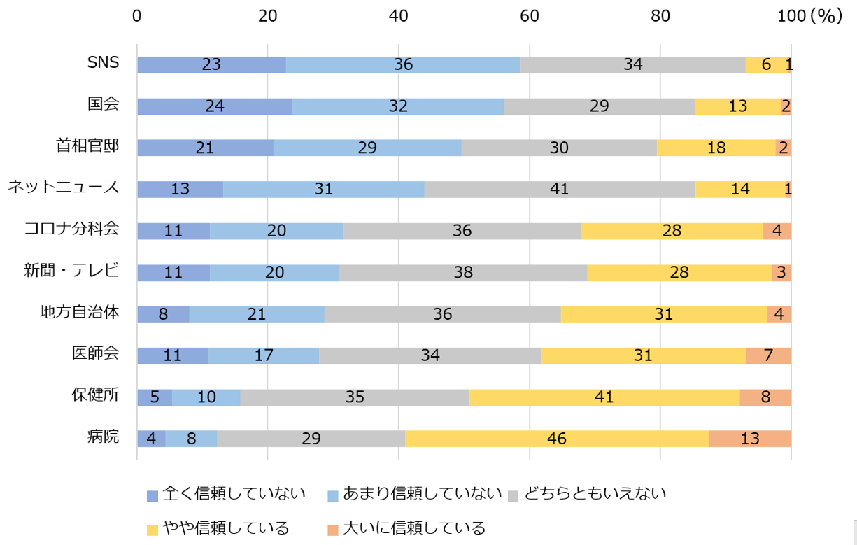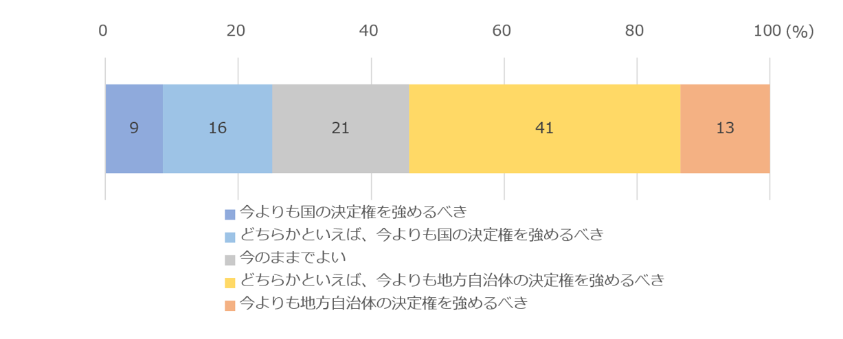 研究報告書 2023.05.29 「コロナ禍の政策と行動から見る日本人の自由と平等観」についてのアンケート(速報) この記事は分で読めます シェア Tweet NIRA総合研究開発機構 ※本調査の個票データはこちら 概要 (公財)NIRA総合研究開発機構では、「コロナ禍の政策と行動から見る日本人の自由と平等観」についてのアンケートを実施した。本調査は、新型コロナウイルス感染拡大時の政策に対する評価や、政府の行動規制に対して異なる立場の意見を読んだ後の考え方の変化を捉えることを目的に実施したものである。パンデミック時の望ましい行動制限やコロナ禍で感じた不公平感から、日本人の自由と平等観を探る。 政府による行動制限として、最も多くの人が支持するのは「自粛要請」だということが明らかになった。その結果について、異なる立場の意見を読む前(熟慮前)と読んだ後(熟慮後)で自粛要請支持の割合を比較すると、熟慮後に支持する割合がさらに増え、50%となった。また、コロナ禍で「医療関係者など、エッセンシャルワーカーに多大な負担がいったこと」については6割強の人が「不公平だと感じる」と回答した。 なお本調査は2022年10月21日(金)~2022年10月24日(月)にかけて行われ、回収数は2,000件、うち有効回答数(トラップ設問をクリアした人)は1,770件であった。以下の速報結果は、トラップ設問(注1)をクリアした人のみを対象とし、「国勢調査(2020年)」の18歳以上の日本人を母集団とみなして、ウェイトによる補正を行った集計結果である(注2)。 速報を読む(2023年5月29日公表) (2.0MB) INDEX Ⅰ調査結果 1.パンデミック時の行動制限 1.1.政府による行動制限 1.2.行動制限における考え方 2.コロナ政策への評価 2.1.望ましい行動制限別にみたコロナ政策への評価 3.日本のお手本となる国 4.マスク着用への期待 4.1.マスクをしていない人への対応 4.2.マスク着用への期待感 4.3.自分がノーマスクだった場合 5.持続化給付金の考え方 6.コロナ禍で感じた不公平感 7.個人情報提出への抵抗感 8.機関・組織への信頼 9.緊急時の政策決定権 Ⅱ調査概要 1.調査の趣旨・目的 2.調査名 3.主な調査項目 4.調査期間 5.調査方法 6.回収数 7.本報告書の集計方法 8.回答者の属性 9.研究体制 ポイント●パンデミック時の政府による行動制限は「自粛要請」が望ましいと考えている人が最も多く、半数近くとなった。●パンデミック時の行動制限における考え方は、経済よりも弱者保護を優先した方が良いと考える人が過半数であった。●「マスク着用要請」、「外国人の入国制限措置」、「ワクチンの確保と接種」、「全国民対象の10万円給付」は過半数の人が肯定的な評価をした。一方、「GoToキャンペーン」は否定的な評価をする人が肯定的な評価をする人の数を上回った。●日本のお手本となる国は、「特にない」との回答が最も多く33%。アメリカや中国がお手本になるとの回答は少なく、どちらも10%未満であった。●マスク着用要請が出ている時、義務ではなくても 65%の人が「ほぼすべての人」にマスク着用を期待することが分かった。●持続化給付金を給付する際は1件ずつの精査をするよりも迅速な対応の方が望ましいと考えている人が多く、47%を占めた。そして、70%の人が給付対象は売上減少などの条件を付けるべきだと考えている。●コロナ禍で起きた出来事で多くの人々が不公平だと感じているのは、「医療関係者など、エッセンシャルワーカーに多大な負担がいったこと」で63%であった。●コロナ禍での対応や情報発信について、「病院」や「保健所」は半数近くの人が信頼している一方、「SNS」や「国会」は信頼していない人が過半数であった。●緊急時における政策の決定権について、「(どちらかといえば、)今よりも地方自治体の権限を強めるべき」と考える人は54%を占め、「(どちらかといえば、)今よりも国の権限を強めるべき」と考える25%を上回った。 図表図1-1-1 政府による望ましい行動制限-熟慮前後での比較-表1-1-2 熟慮前後での意見の変化図1-1-3 年齢別でみた望ましい行動制限図1-2-1 行動制限における考え方-熟慮前後での比較-表1-2-2 熟慮前後での意見の変化図1-2-3 年齢別でみた行動制限における考え方図2 コロナ政策への評価図2-1 望ましい行動制限別にみた、コロナ政策への評価図3 日本のお手本となる国図4-1 マスクをしていない人への対応図4-2-1 マスク着用への期待感図4-2-2 年代別にみた、マスク着用への期待感図4-3 マスク非着用時の感情図5-1 給付プロセス:迅速さか正確さか図5-2 給付対象:条件付きか一律か図6 コロナ禍で感じた不公平感図7 個人情報提出への抵抗感図8 機関・組織への信頼図9 緊急時の政策決定権 Ⅰ調査結果 1.パンデミック時の行動制限 1.1.政府による行動制限 Q3.コロナ禍感染症の拡大を防ぐために、日本では不要不急の外出や飲食店の営業などを自粛する「要請」が出されました。他方、海外では、営業などの行為を「禁止」し、違反時には罰金等を科す国もありました。パンデミックなどの緊急事態におけ