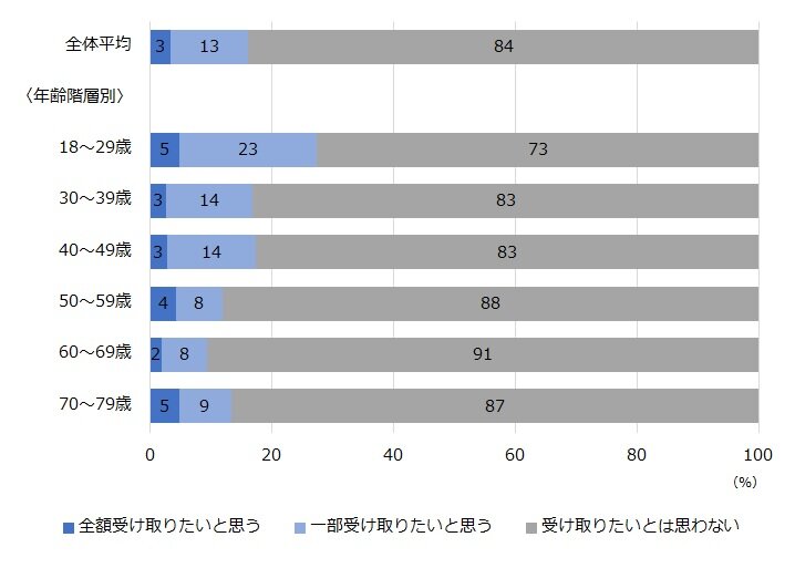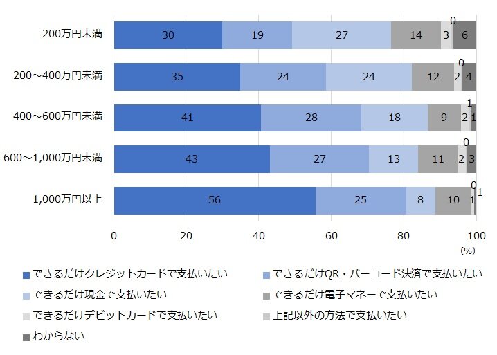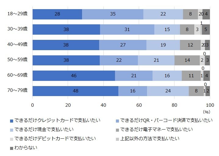 研究報告書 2023.09.29 キャッシュレス決済実態調査2023(速報) この記事は分で読めます シェア Tweet NIRA総合研究開発機構 ※本調査の個票データはこちら 概要 政府は近年、キャッシュレス決済の推進に取り組んでいる。現在のキャッシュレス決済の実態を正確に把握するため、NIRA総研はアンケート調査を実施した。結果として、個人の消費支出額におけるキャッシュレス決済比率は、70.6%であることが明らかになった。5年前の2018年に実施した同調査と比べると、19.3%ポイント増加している。この結果は、従来の統計には含まれない銀行口座間送金なども考慮しており、消費者個人の実感により近いものと考えられる。こうした現状と変化を踏まえた上で、キャッシュレス社会に向けた今後の課題をしっかりと見極めて議論していくことが重要である。 なお、本調査は2023年8月23日(水)~2023年8月28日(月)にかけて行われた。回収数は3,000件で、うち有効回答数(トラップ設問をクリアした人)は2,403件。速報結果は、トラップ設問をクリアした人のみを対象とし(注1)、「国勢調査(2020年)」の対象のうち 18歳以上79歳以下の日本在住者を母集団とみなして、ウェイトによる補正を行った集計結果である(注2)。 (お詫びと訂正) 2023年9月29日公表の数値に誤りがありましたので、お詫びいたします。数値は、正しいものに修正済です。修正箇所については、正誤表をご覧ください。 速報を読む(2023年9月29日公表)(2024年1月4日修正) (1.6MB) 正誤表(2024年1月4日) (405.4KB) 関連レポート/NIRAオピニオンペーパー「大きく進捗したキャッシュレス決済」 (1.7MB) INDEX Ⅰ調査結果 1.支払手段の利用状況 1.1.各種支払手段、サービス等の利用状況 1.2.年齢階層別にみた各種支払手段の利用状況 1.3.世帯の年間所得階層別にみた各種支払手段の利用状況 1.4.現金の所持 2.最も利用したい支払手段 2.1.支払手段の希望 2.2.現金で支払いたい理由 3.品目別の支払方法 3.1.日常的に購入する品目 3.2.定期的に購入する品目 3.3.購入頻度の低い品目 3.4.最近利用が増えている品目 3.5.保険料及び税金 4.個人の消費支出額におけるキャッシュレス決済比率 4.1.全体のキャッシュレス決済比率 4.2.世帯の年間収入階層別にみたキャッシュレス決済比率 4.3.試算の方法 5.時系列の変化 5.1.2018年調査結果との比較 5.2.コロナ禍の前後での支払方法の変化 6.キャッシュレスに対する意識 7.ポイントサービスに対する意識 Ⅱ調査概要 1.調査の趣旨・目的 2.調査名 3.主な調査項目 4.調査期間 5.調査方法 6.回収数 7.本報告書の集計方法 8.回答者の属性 9.研究体制 ポイント●個人の消費支出額におけるキャッシュレス決済の比率は70.6%であった。●最も多いキャッシュレス決済の手段はクレジットカードで41.1%。次いで口座引き落とし(10.0%)、QRコード・バーコード決済(8.1%)となっている。●世帯の所得が高いほど、キャッシュレス決済比率は若干高くなる傾向にある。●5年前の同調査と比べると、キャッシュレス決済比率は19.3%ポイント増加した。●5年前との比較の内訳は、クレジットカードでの支払いが10.1%ポイント増加、QRコード・バーコード決済およびタッチ決済の合計が8.6%ポイント増加、キャッシュカードでの振込が0.5%ポイント増加となっている。一方、口座引き落としは0.3%ポイント減少した。●各支払手段の利用について年齢階層別にみると、クレジットカードを利用する人の割合は18~29歳が若干少ない。一方、QRコード・バーコード決済の利用は若い人ほど多い。●支払時に利用したい手段は、クレジットカードが最も多く40%、次いでQRコード・バーコード決済が25%、現金は19%である。 図表図1-1-1 各種支払手段の利用状況図1-1-2 関連サービス等の利用状況図1-2-1 年齢階層別にみたクレジットカードの利用図1-2-2 年齢階層別にみたプリペイド式電子マネーの利用図1-2-3 年齢階層別にみたQRコード・バーコード決済の利用図1-3-1 世帯の年間所得階層別にみたクレジットカードの利用図1-3-2 世帯の年間所得階層別にみたプリペイド式電子マネーの利用図1-3-3 世帯の年間所得階層別にみたQRコード・バーコード決済の利用図1-4 現金の所持金額(全体平均、年齢階層別、世帯の所得階層別)図2-1-1 支払手段の希望図2-1-2 年齢階層別にみた支払手段についての考え図2-1-3 世帯の所得階層別にみた支払手段についての考え図2-2-1 現金で支払いたい理由図2-2-2 年齢階層別にみた現金で支払いたい理由図3-1 日常的に購入する品目の支払方法図3-2 定期的に支払う品目の支払方法図3-3 購入頻度の低い品目の支払方法図3-4 最近利用が増えている品目の支払方法図3-5 保険料及び税金の支払方法表4-1 個人の消費支出額におけるキャッシュレス決済比率図4-2 世帯の年間所得階層別にみたキャッシュレス決済比率表5-1 キャッシュレス決済比率の5年前との比較図5-2 コロナ禍の前後での支払方法の変化図6-1 CBDCへの認識図6-2 デジタル給与の受け取りの希望図7-1 利用しているポイントサービスの種類図7-2 共通ポイントサービスの利用図7-3 ポイントサー