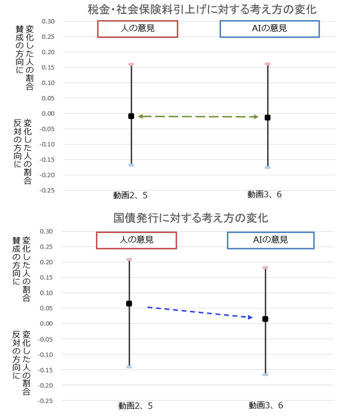 研究報告書 2024.02.20 AIは民主主義を深化させるか?少子化政策の財源に関する調査実験 この記事は分で読めます シェア Tweet 谷口将紀 東京大学大学院法学政治学研究科教授/NIRA総合研究開発機構理事長 鈴木壮介 NIRA総合研究開発機構研究コーディネーター・研究員 竹中勇貴 NIRA総合研究開発機構研究コーディネーター・研究員 概要 人の役割をAIが代替する局面が増えているが、政治的熟議にAIは活用できるのであろうか。熟議の要諦は、人々が様々な情報に触れながら自らの意見を再考・修正するところにある。人々の情報収集をAIが支援するなど、熟議の過程にAIを介入させたとき、人々の意見形成にどのような影響が及ぶのか。 本プロジェクトでは、少子化政策の財源は税金・社会保険料と国債のどちらがよいかという争点を例に、熟議におけるAI活用の可能性を探り、以下の結論を得た。第1に、将来世代の意見を人間が予測してもAIが生成しても、その意見を見ると、将来世代の意見に接しないときと比べて人々は税金・社会保険料の引き上げに肯定的で、国債発行に否定的になる。第2に、将来世代の意見をAIが生成した場合も、人間が作った場合から少子化対策の財源に関する人々の考え方の変化に大差は見られなかった。第3に、人が提示した論点は自己中心性バイアスがみられるのに対し、AIが提示した論点はより多様な視点に立っており、かつ多くの回答者から重要な論点として評価された。 これらの知見は、民主政治における意見の提示や論点の設定という人間の役割を、AIは不自然ではない程度に代替できることを示唆している。 エグゼクティブサマリーを読む (189.2KB) PDFで読む (12.4MB) INDEX 第1章 研究の動機 1.熟議におけるAI活用の可能性 2.少子化政策の財源問題 第2章 研究方法 1.論点の抽出 2.論点に対する意見と動画の作成 3.人々の意見の変化の集計方法 第3章 調査結果 1.将来世代の意見を見ることによる影響 2.将来世代の意見をAIが作成したことによる影響 3.論点をAIが作成したことによる影響 第4章 結論 付録1 事前調査概要 付録2 本調査概要 付録3 本調査の質問票と単純集計結果 付録4 本調査の動画のスクリプト ポイント●人々が少子化政策の財源に関する論点について考えると、自身の損得を優先的に考える自己中心性バイアスを帯びた視点が多くなった。●AIが少子化政策の財源に関する論点を抽出すると、専門家が発信している論点を包括する傾向が見られた。●AIが抽出した論点についても人々は重要だと考えており、AIを活用した論点設定の有効性がうかがえた。●人々がこれから生まれてくる将来世代の意見を見ると、少子化政策の財源確保のために税金・社会保険料の引き上げに肯定的になる一方、国債発行には否定的になった。●将来世代の意見を、人間が予測した場合でもAIが生成した場合でも、人々に与える影響について有意な差は見られず、双方を比べても遜色ない結果となった。●AIが生成した将来世代の意見を見た回答者に、違和感があったかどうかを聞くと、64%が「違和感はなかった」と回答した。図表図2-1 人々が考える少子化対策の財源図2-2 少子化対策の財源に関する論点表2-3 論点ごとの回答要旨表2-4 6つの動画の内容図2-5 本調査の概要表3-1 熟慮前後での意見分布図3-2 将来世代の意見の有無による考え方の変化図3-3 将来世代の有無での比較図3-4 AIが意見を作成したことによる考え方の変化図3-5 人の意見、AIの意見での比較図3-6 AIの意見への違和感図3-7 AIが論点を作成したことによる考え方の変化図3-8 人の論点、AIの論点での比較図3-9 人が重要だと思う論点 第1章 研究の動機 要旨 人の役割をAIが代替する局面が増えているが、政治的熟議にAIは活用できるのであろうか。熟議の要諦は、人々が様々な情報に触れながら自らの意見を再考・修正するところにある。人々の情報収集をAIが支援するなど、熟議の過程にAIを介入させたとき、人々の意見形成にどのような影響が及ぶのか。これが本研究の動機である。 本稿では、少子化政策の財源は税金と国債のどちらがよいかという争点を例に、熟議におけるAI活用の可能性を探る。 1.熟議におけるAI活用の可能性 研究の趣旨 AI(Artificial Intelligence、人工知能)は民主政治の味方か、それとも敵か。NIRA総合研究開発機構のプロジェクト「AIを活用した熟議プラットフォームの形成」は、熟議民主政治に対するAIの活用可能性を検討した。 AIによるチャットツールとして、ChatGPTは広く知られている。ChatGPTは、OpenAIが開発した言語モデルの1種で、膨大なテキストデータの学習を通じて、ユーザーが与えた入力に対する応答を生成でき、尋ねた質問に答えたり、対話を行ったりする。 そこでは政治や経済に関するトピックスも対象になりうるが、将来さらにAIの技術が進んだとしても、AIが政治家を完全に置き換え、民主政治のすべてを担うことは難しい。民主政治とは決定された結果のみならず、その決定に至る過程も含むものだからである。もし、民主政